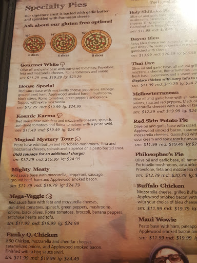 I was excited when I read about this place - seemed neat, however, I was let down. The diverse menu drew me in however, if you want good unique pizza go to Deweys. Really. Their salads are to die for as well. My issues with Mellow Mushroom: no lunch menu, my friend got a salad that ended up being $12 after adding toppings and I wanted to try the gluten free pizza and was forced to get a medium instead of a small. Also, the gluten free crust cost more than the regular and my server didnt tell me that. To top it off, the crust isnt homemade!!! I guess that is why I was limited to a medium size... tasted like cardboard or old stale bread. My pizza was $22!!!! NO FREAKIN JOKE!!! Went out for a quick lunch with a friend and was expecting to pay around $10 and paid $22 for a pizza???????? NEVER AGAIN. Our server was slow, we were there over an hour and I was late getting back to work. The atmosphere was clean (but they are new) however the value, service, and food doesnt even rank.