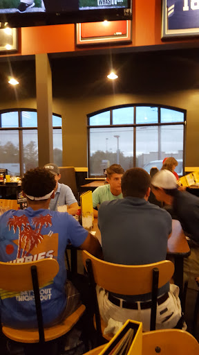 I really enjoy sports and food. Which is what this place is all about. So I frequent this BWW since it is close to my house. However the food service here is extremely slow. Sometimes it can take up to 30 minutes just to receive an appetizer. Also, the big screen needs to be updated. It is very dim and hard to see from across the room.