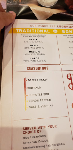 I tried this location several times but everytime is the same experience. Wings never taste fresh. I stay in a hotel nearby a lot for work and when I order carry out.. They always say 20 min instead of 10 to 15 like others rest.. I think they r trained to say that. However, If u get there in 20 min U ll b eating cold wings. Last time I order, today, I had one item missing in my bag n didnt realize till I got back to my hotel. The girl that answered the phone at FIRST said no u didnt order potato wedges I said it was included in the kids meal I ordered THEN she said MY HOST CHECKED the bag n everything was there. Really??????!!! NEVER AGAIN!!!!