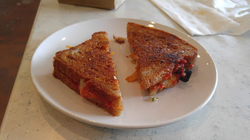 Was looking for a new place to have a business lunch and saw that they are now serving sandwiches. Id heard good things about the bakery, so thought Id try it our myself. I arrived at 12:30 pm and there three customers waiting for their carry out orders. My lunch date and I had the place to ourselves, so I cant speak to the acoustics. The color scheme is really nice with comfortable seating. I ordered the Fig on Brioche sandwich and my prospective client ordered the Egg Salad Sandwich. Both of us were delighted with our meals. My sandwich was dressed with bacon jam - and I truly could have eaten that jam by itself! Both sandwiches came with a mixed green side salad with balsamic vinaigrette. Both sandwiches were grilled and pressed. Both plates were clean when we were done. Definitely a place I will come back to and definitely a place I recommend.