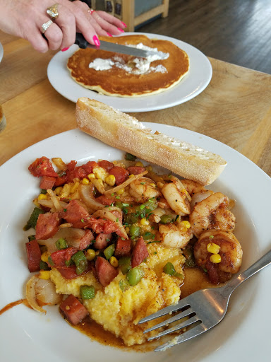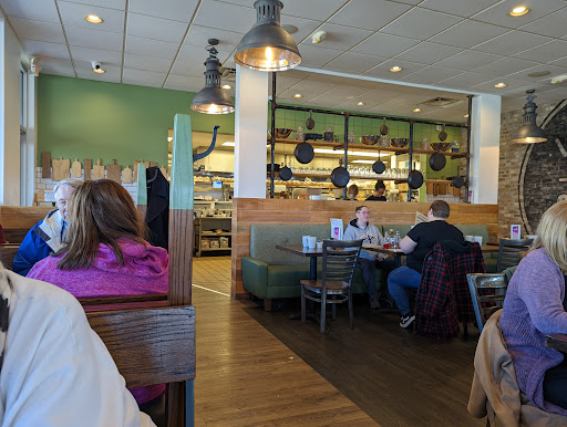 Solid breakfest/brunch offerings that are a bit different then what you would get at a diner. Lots of healthy options and seasonal pancakes/offerings help freshen things up when youre used to standard fair of eggs, bacon, etc. There is lots of seating, including high chairs, and the staff and location is very kid friendly.
