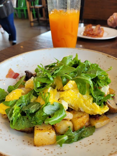 Great brunch place, although 10am-12pm is usually pretty busy. The atmosphere is modern open, and it can be a little tightly packed in some of the places. Lots of vegetarian and healthy options.