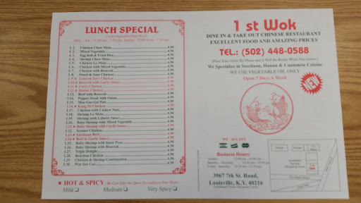 The service at 1st wok is terrible, the staff is very rude and very very unprofessional. I will never eat or recommend anyone to 1st wok on 7th street in southland terrace plaza. I would only send my worst enimy to this place.