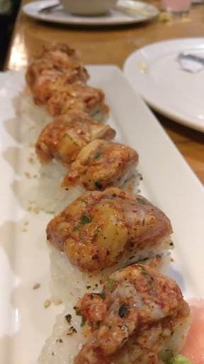 The sushi was okay, I dont really feel that we got our moneys worth, it was kind of expensive. I ordered a Sunday Morning roll which is pretty basic, it came out with hardly any salmon in it and it was very dry and overcooked. I dont think Ill go back.