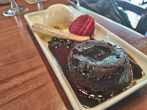 First visit will be last visit. Our server was not in the happiest of moods. She seemed like she didnt want to be working. We ordered waters so we can decide on what drinks we will be having. Ten minutes after water she asked us for our order for food. She forgot to even ask about our bar drinks or if we wanted an appetizer. My silverware was dirty and she didnt seem to care. After 30 mins and no appitizer I looked at my husband and told him to make sure appitizer is not in bill. Our main meal came and we told her about the non appetizer. She did say she forgot and will give it to us free. Food was OK not the best I have had. Our chocolate cake tasted frozen and my salmon did not taste a thing like bourbon or what ever it had mentioned. I was disappointed since I was looking forward to eat there for some time. Definitely need servers who are happy to be at work and who do not forget about their tables.