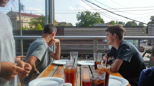Have been to this location twice. Most recent visit was this past Sunday evening. We were there to have a family bday dinner and our experience was not good at all. First let me say the atmosphere is great but the service was horrible. We sat upstairs on the patio area. Our waitress seemed to be bothered with getting us as a table from the beginning. She took our drink order then 15-20 min later came and took our food order. We were going to add onion to our pizza and was told they were out. I ask for lemon in my water was told they were out. She brings my salad and it was a bowl of lettuce With only tomato and mushrooms, nothing else so Im not sure if thats all that comes on it or they were out of stuff. 40 minutes after we ordered we still did not have our appetizer and had not seen our waitress so I went inside and ask whats going on and about 5 minutes later we had our pretzels ( which were great). Then we finally get our pizza and the bottom is completely burnt!!! I really hate this because its a fun place to go to but it did kinda ruin it for everyone... the waitress was horrible when we ask for extra ranch and banana peppers she seemed to get really aggravated!! Definitely need to address these issues with the staff and especially the cooks.