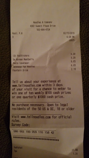 Always love a trip to Noodles & Company. The food is great. This location is clean and conveniently located.