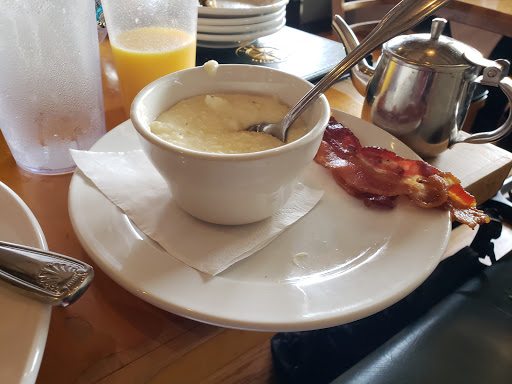 I went for a Sunday brunch and was served a delicious, filling meal at a very reasonable price. There are of course you staples: pancakes (moist, delicious), grits (rich), bacon (crispy, big slices), a homemade sausage patty that is spicy and delicious, among other standards. I also enjoyed their bacon, green apple, bleu cheese sandwich--I was skeptical but it was spot-on. I have not tried their dinner, but I would absolutely recommend breakfast. They open at 8:00am during the week, and I have gone now a few times. Many people are on their computers, but Im there for a good, hearty breakfast.