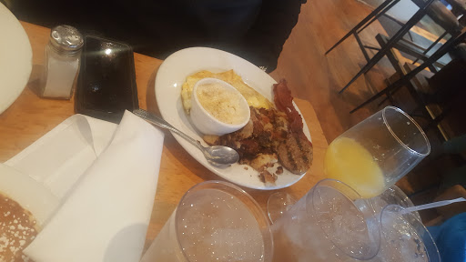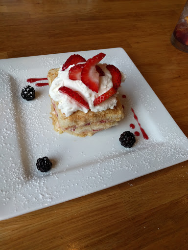 Went for brunch and were so tempted by the dinner menu we went back the same day. I dont do bacon, so I avoided the breakfast burrito and opted for the vegan one. Wow! My bf preferred mine to his normal one. It was the pineapple plus salsa and black beans. Ahhh and the guac. Orange challah french toast was ok, but its hard to beat my moms. The dinner was delicious. We had tapas version chicken quesadillas which had the guac. The waitress let us try the blueberry bbq sauce which they use on their babyback ribs. My chicken n dumplings were delicious as were his salmon and risotto (though he couldve gone for a larger portion). That left room for peanut butter (mousse) pie. I know the talk is all brunch, but give the other stuff a shot. Dinner was even better!