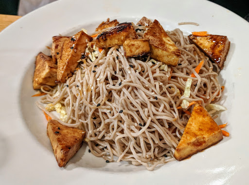 UGH I did that thing where I totally meant to get a picture of my delicious food but forgot in an excited hungry rage and gobbled it up. Hahaha needless to say it was delicious. Shifting back to vegan diet for personal health reasons but my boyfriend is no such thing. In between jobs we stopped to grab a bite where we could both get something good. Total win. Did the cold sesame ginger soba noodle salad with tofu and as picky as I can be about tofu, it was delicious. Review of his Smoked Turkey sandwich from him was 2 thumbs up not gone quite as fast as mine but Im a human vacuum so...thats not a fair measure of judgement. Wait staff was chill, everything was quick. Pictures next time...