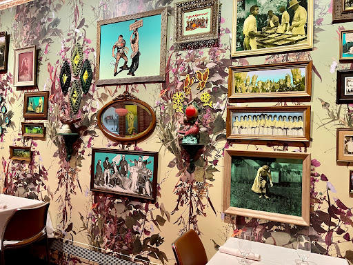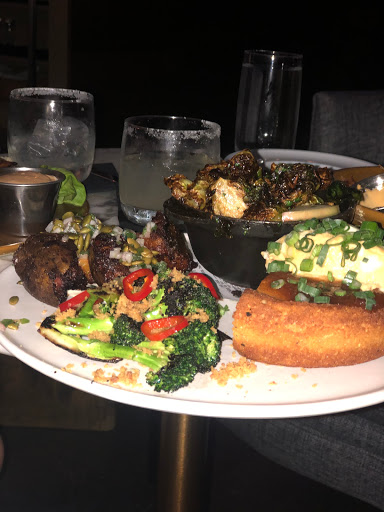 The interior is lovely and eclectic (no surprise since this is a 21C restaurant). I loved the original artwork and beautiful furnishings and fixtures in the dining rooms and bar area (think rustic meets modern industrial meets vintage chic). My friends loved the locally sourced bison burger. The seared octopus appetizer was interesting but could have used more flavor; same with the bone marrow (roasted bones appetizer). The charcuterie plate was excellent; Id definitely order it again. We had two different ports and the house gelato for our dessert course; these were all great. Service got slow, but the restaurant was very busy so this is understandable. Our server was friendly and very knowledgeable about the menu.