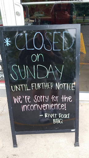 River Road Barbecue, has a unique way of expressing its flavor. Mouth watering brisket, and pulled pork sandwiches so tender that they melt in your mouth. And its slogan is true. Best da_n barbecue in the state!!! Just off 71, zorn ave exit roll down the window for some free smells that will lure you to blue jeans and baked beans and the best barbecue sauce in the state!!! If ever in Louisville exit and enjoy. This place is a hall of famer in my book....