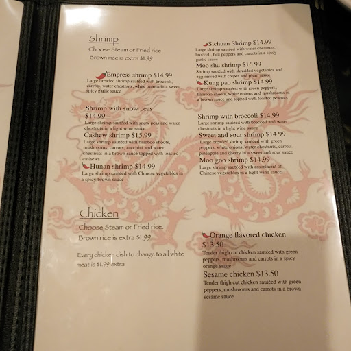 From the previous review... of course you dont ever have to wait to get a table here, because it is literally the worst chinese food, or actually just the worst food in general I have ever paid to eat. My family just moved here and this place is right around the corner from our home, so I thought wed give it a try. HUGE waste of money. We got the Empress Chicken, Sesame Shrimp, Crab Ragoon and Egg drop soup. The Chicken, Shrimp and Crab Ragoon tasted like it was 3 days old and had definitely been reheated in the microwave. The rice had also been reheated in the microwave and was unbelievably dry. I didnt think anyone could mess up Chinese food this bad... but they have it down pat.