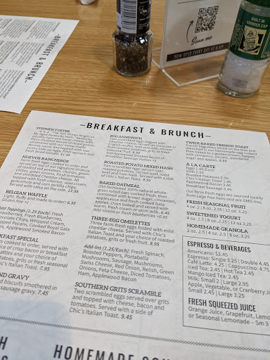 Food was mediocre at best, server seemed irritated. It was as if she was trying to rush us to order but there were only a few tables. Many parts of the food seemed inexpensive, like the cheap sausage. Id rather get real sausage from Whole Foods and patty it at home for the price. Christian owned and operated but it sure doesnt feel like it. Maybe ownership changed or our standards lessened?