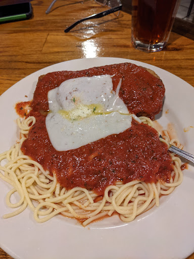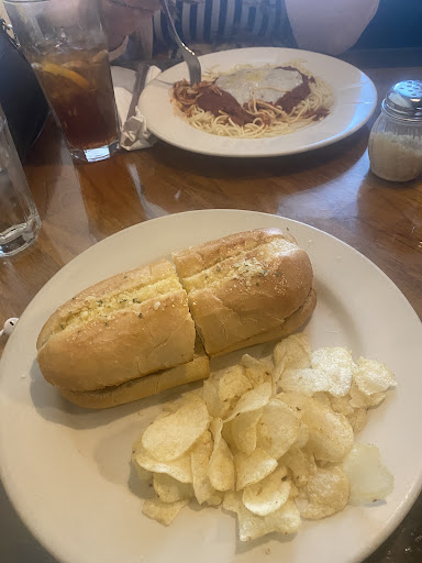 Food was delicious, atmosphere very nice service very good very attentive service reasonably priced Caprese salad as an appetizer was enough for two people to share eggplant Parmesan and veal parmesan nice sized portions both came with a side of spaghetti which was also delicious their breadsticks are yummy