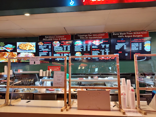 If you have ever eaten at a burger chain called "Fuddruckers", I believe this is a former store from that chain. It tastes the same, which is good, and you get to build your own burger which is also good. There are other choices other than burgers and an in store bakery as well. I would actually give it a 3.5 but that was not an option on here.