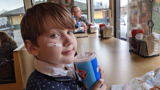 Late evening eating decision...9p+. Tables and seats were not clean. Bit server readily cleaned for us. Food was hot, fries delicious, and ice cream desserts yummy.