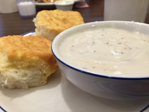 Bob Evans is clean and cheerful and has lots of windows. The waitress arrived at our table with steaming pots of regular and decaf coffee as soon as we sat down; our food arrived - piping hot - ten minutes later. The price was right - $4.69 for a cup of sausage gravy and two large (1.5” tall x 3” wide) biscuits. But the creamy white gravy is what knocks your socks off. The kitchen has done something special with this breakfast staple: used cornstarch for thickener instead of flour? Pumped up the milk with half and half? “Nobody beats their gravy,” my husband says. “Not in this town.” It grieves me to admit that includes my own kitchen. Bob Evans has a wide variety of breakfast combos, including a long list of healthy, low-cal offerings, and lunch and dinner as well. I tried, but could find no points-busters in any category. Five stars.