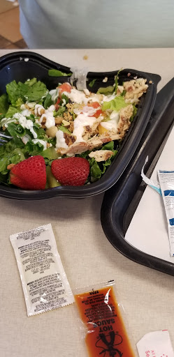 We have never had a bad meal here. Food is fresh tasting, the staff friendly and very hard working. The menu provides healthy choices, kids meals, soup, salad as well as grilled and batter-fried crispy chicken sandwiches. This location is very popular. They are always busy. The in-house service and drive-thru are very efficient and the ques/ (lines) move quickly. The parking lot is a bit cramped, especially when the drive-thru is the busiest. Caution when entering the parking lot by car or pedestrian. Tip: I park in the shopping centers parking lot. It is within walking distance to Chick-fil-A. Also, leaving by car easier.