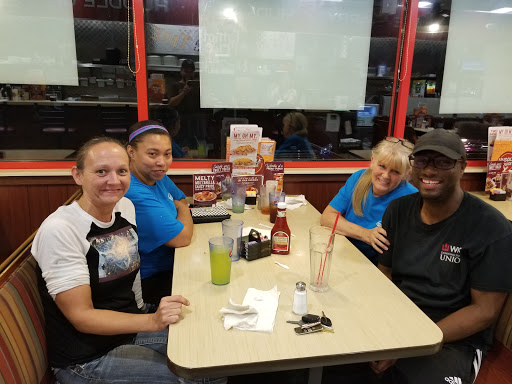 I have to say that the employees at this Huddle House make the place one of our favorite restaurants. They are always cheerful, eager to please, optimistic and give great tips on how to save money for those on a budget. Just ask for the deals and they will help you out. The food is good as well and its interesting to watch the chefs cook up your order. I must say they do need to clean the place a bit more BUT you cannot find a more pleasant atmosphere and a great group of people to serve you a meal.