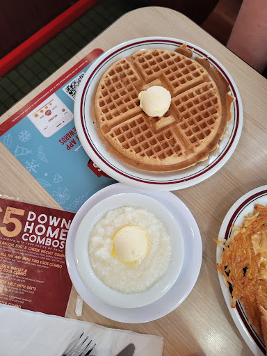 Service was extremely slow. Waffle was forgotten off order. Waitress only came to table once to check on us before order was delivered. I eat at quite a few Huddle Houses while traveling, this one was very disappointing.