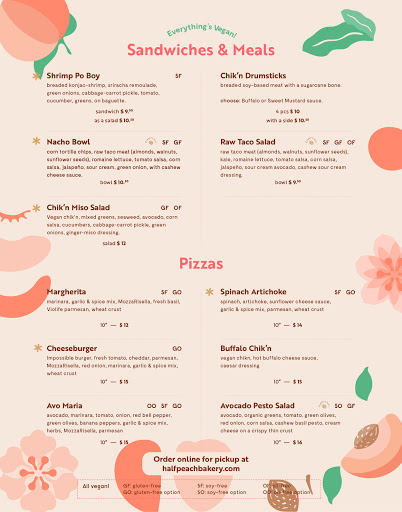 What a great vegan gem in the St. Mathews area! We walked into the cafe and were greeted by the owner, who was very sweet. We both got the fried mushroom drumsticks, which are made of mushrooms and seitan wrapped in tofu skin before being battered and fried and--HOLY MOLY--they were very good! Before we got our food, the owner gave us samples of different items from their hot bar, all of which were delicious. The cafe also has a small area of their store for miscellaneous vegan and all-natural goods to buy and take home. We went a little crazy and got 6 packages of Louisville Vegan Jerky and three tubs of the cafes chocolate chip cookie dough to bring back with us to Cincinnati. To be fair, Half Peach Cafes chocolate chip cookies are everything that I love in a cookie--soft on the inside, slight caramelized crunch on the outside and a light sprinkle of sea salt on top. Oh, and plenty of chocolate of course.