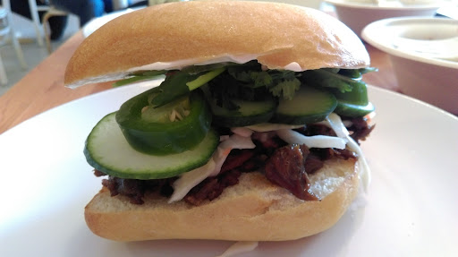 We were looking for some amazing vegan restaurants in Louisville and this was one of the top recommendations. And after our experience here, I can understand why. Food: It is a 100% vegan restaurant and has numerous options in terms of coffee, tea, smoothies, salad bowls, sandwiches and some Mediterranean stuff like falafel. We went for Banh Mi with a side of French Toast Bread Pudding and Falafels with a side of Scrambled Tofu. Banh Mi was amazing. The mixture of monkey head and enoki mushrooms with soy protein came across as great and the veggies complemented well. The bread was nice. French Toast Bread Pudding tasted great. Falafels on a whole wheat flatbread were great. What I loved about the whole dish was the proportion of filling to the size of flatbread which ensured no spill and a clean eating experience. Very well thought. However, the flop of the show was Scrambled Tofu which had good spices but was totally missing out on acidity. I would give it a skip the next time. For desserts, we went for Carrot Cake and Peach Ginger Almond Cake. We loved them both. Carrot Cake was a little drier than normal which could be improved. However, in terms of taste, both of them were great. Besides cooked food they also sell items like Red Tea, Kentucky locally brewed Kombucha and Cashew Cheese Sauce. Ambiance: Great and peaceful ambiance. It is not a large place but still has a seating capacity of about 25-30 folks. They have a large table, multiple small tables on the other side and a couple of round tables in the center. The overall ambiance is quite neat. Service: Good service and very friendly staff. We had our order prepared pretty much at the right time. Although the order of the food as it came was quite strange. We got the sides quickly since they were ready and by the time our main order came - Banh Mi and Falafels - we were done with sides. Having said that, the service was good overall. They have sizable parking outside. No specific parking for the restaurant per se but it is a general and free parking for the customers visiting any of the shops of restaurants in the complex. Overall, a great place for an amazing vegan meal in Louisville.