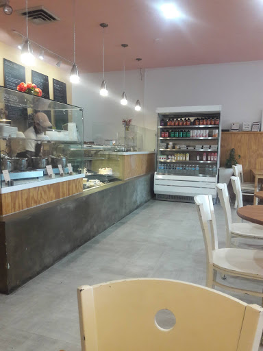 The decor is nice and the managers are friendly especially the older woman. Love her!!!! But tbh depending on when you go there they barely have a selection of food. When we went it was empty and the bakery part had nothing really just a cookie, not because they were sold out it seems they only bake on thursdays and the food selection is small. But for what you get it tastes ok. Also the place seemed desolate and had a depressing aura. I had the falafel and the falafel was really hard and difficult to chew.