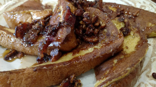 For some odd reason a restaurant with "egg" in its name has trouble with the art of how to fry an egg. If you go to another "steak house" you wouldnt expect when you order a medium well they would bring you a rare steak. Why is it ever time I order over MEDIUM I get either a hard yolk or a runny egg including egg whites that run. Over Medium is a cooked egg white with a gel like yolk, not hard and not runny. Another broken egg seriously needs to invest in training their cooks on the difference. Bacon is thick and good. Sausage is good which I never tried but they messed up my order and brought me that, so I tried that. Everything is good here but the eggs, unless you like them scrambled or boiled. That seems the only way they know how to cook an egg. ABE, take the "egg" out of your name. Hire more staff for the weekends, especially in the bar, this server is too busy to offer great service.