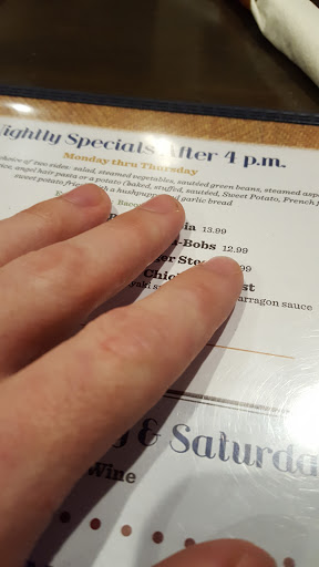 This is a GREAT local restaurant!! My husband loves the Gouda and lump crab soup. The Red fish topped with crab meat, mushroom, and sun dried tomatoes was UNBELIEVABLE!!! My daughter had the St. Louis smoked ribs and they were so tender they fell off the bone! We took a Godiva Chocolate Cheese cake home with us and it was the best late night snack!! The service was friendly and courteous! This is a MUST try restaurant!!