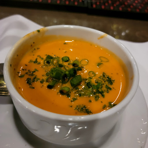 Food was good. The waiter, Adam, made it difficult to enjoy. He didnt tell us all the specials, did not bring out our soup before our meal arrived, blamed it that they ran out (we arrived when it opened at 5pm), then offered to bring it out for free. We agreed to take one, and it was a different soup than ordered. They were not out of the original soup as he claimed. He did bring us a free dessert to make up for it. Then, he didnt bring us any of the scratch off cards other diners were getting at the end of the meal. It didnt matter, we dont plan on going back anytime soon. The food is good here, but not great, and really not worth what is charged. Go early, and avoid our waiter. Dont bother ordering the molten chocolate cake. It tasted a few days old and had a spongy texture.