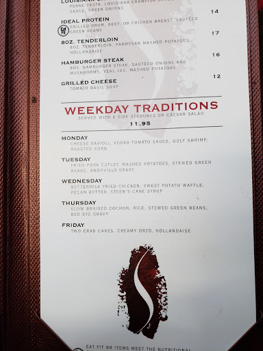 The soup was great. For the main course, I had the Redfish. The fish was lukewarm; the rice under was hot. I should of stopped there, bud I didnt, I gave the bread pudding a go. When I took the first bite, it LITERALLY burned my lips and tongue off. When I asked how the bread pudding was served, thats when I was informed that Stroubes preheats its bread pudding in the microwave. If Im expected to pay for a high end dinner, I expect an excellent authentic meal in return... BTW: The waiter was great!