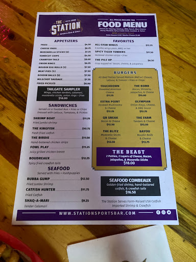 The Station Sports Bar and Grill is a Baton Rouge gem! No where in this city will you find a bar this unique--The bar sits inside old box cars (yes, once parts of an actual train) and its decorated with sports memorabilia that would make any serious collector jealous. The food is great, the staff is friendly and the place is CLEAN. Stop by...youll be glad you did!