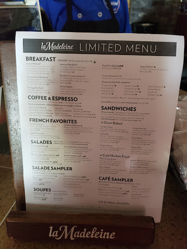 Delicious assortment of meals to choose from. Friendly and helpful staff. Beverage & bread stations are in the dining area so you can serve yourself. The cafe ambience is nice, with a rustic French setting. Dining area is attended to and tables are promptly cleaned. Remember to get their mobile app and sign up to receive offers; rewards are always good. And for your convenience, you can also order on the app for pick up. For meal recommendations: Theres "Pasta La Madeleine" that comes with shrimps or with chicken; theyre both very good and always includes lots of mushrooms in it. The "Cafe Sampler" is a good choice as you get to pick a combination of 3 food items to try, from their soups, sandwiches, salads, pasta, etc. Try the cream of mushroom soup; its delicious! Always an enjoyable dining experience.