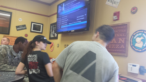 Good pizza, nice wings (kinda small tho) and a long wait due to rotations coming through and people dont eat for free at the Dfac. Giving it a 4 stars because I know even if this place is rated 0.1 it will still be full of customers and privates with no financial managements.