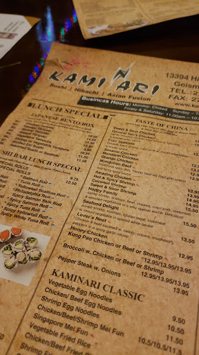 Welcome to kaminari, as a way to reward our loyal customers, we are giving out 10% and 20% special offers. you will get10% off all-day from our menus when you order. during happy hour2:30-5:00 you will get 20%0ff. if any offer changes, we will notify you. thank