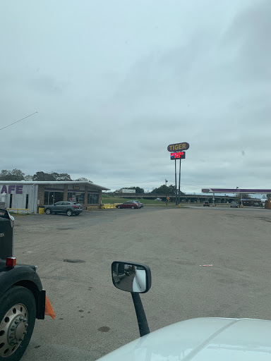 Food! Awesome! Service, the worst I have seen in a while. I wish there was a 2 tier rating system. This is really a nice truck stop that simply has a few issues to address. We entered the cafe where 2 employees were present, 1 sweeping and the other approaching a table. We stood there for about 30 secondso without being greeted. I said "excuse me, do we seat ourselved?" And in a snappy tone, the one sweeping said "that side." My husband ordered water as I went to the restroom. I returned, seconds before the waitress brought the drinks. She was loudly talking with the other lady, put the waters on the table, did not say anything even when I said "thank you" and my husband said "thank you maam." We almost got up and walked out but a dear friend said the food was great. Through out the visit the waitress was simply rude. The food, however did arrive hot and tasted like home cooking. Our table was never pre-busted and we were never offered a drink refill, dessert, or if everything was satisfactory. She took our order and brought the food. On the other side of the property is Tony the tiger, hes housed in a large clean setting and well taken care of. There is a drivers lounge in a trailer which was clean with 2 clean showers. The mens restroom was located outside the store and was disgusting. The womens restroom inside the store was clean and well maintained. This would be a great truckstop with a better staff and better kept bathrooms. To recap, the food was worth dealing with everything else. Kudos to the cook.