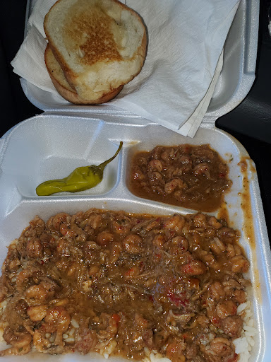 Talked my boyfriend into stopping here. Were on our way through to Texas and he has seldom had cajun cooking. The,seafood platter was delicious and the lima bean soup,was to die for. Our waitress was super nice and unlike what someone else said she was ok with us sharing. She kept our glasses full and gave us to go boxes,and drink cups. She even helped pack up our to go boxes. I would definately recommend this cafe- excellent place for truck drivers to stop.
