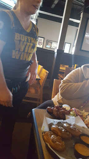 Waited 30-40 minutes this visit for food. Last time I called in my entire order for take out arrived to be told they had forgotten my order. Then it took an hour. If someone is giving them 5 star reviews its the people that work there. The worst Buffalo wild wings in the USA.