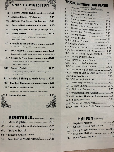 This is our second time come to Panda house Chinese restaurant in this week.garlic shrimp rocks. general Tsos chicke and Mongolian beef are outstanding .we get free crab Rangoon on orders over 28 dollars.the prices are good and the staff friendly.