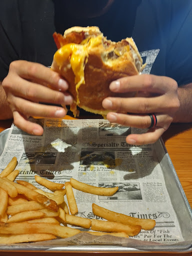Good burger and fries, nothing to write home about. Lots of tvs and family friendly.