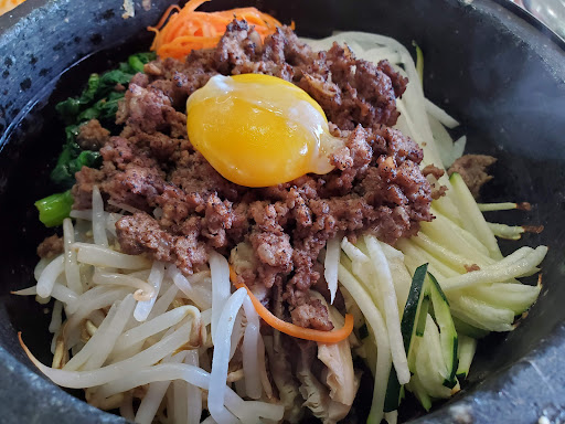 This place could have used a working air conditioner. The wait staff might do well to check on their customers more than just once after ordering. I nearly died of dehydration while waiting on a drink refill for my iced tea — the refill never came. There was no doubt the food was Korean but the taste seemed made to appeal toward a more western palate so they lost brownie points on authenticity and lack of "pungent" fermentation which can be key to many Korean dishes.