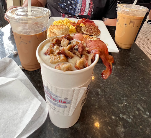 We have been there many times for breakfast. Breakie with a bloody Mary on Mardi Gras morning. Heaven. The biscuits are great. The breakfast go-cup is what we get on our parade day. We ride with the Krewe of Tucks. The bartender said " I make the best bloody Mary you will ever have." And it was. Honestly. Love the people we have met. All the dogs we have petted. The parade of crazies and costumes on Mardi Gras morning is not to be missed. We were eating breakfast at one of the tables next to the open windows. It was Mardi Gras morning. My 15 yr Old daughter said "mommmmmmmmm!" And pointed out to the sidewalk. There was a gentleman in a cowboy hat, boots, and a frilly pink baby doll pajama outfit waving at us. I told her " take his picture, He will go away." He did. The day got much weirder after that. Ha
