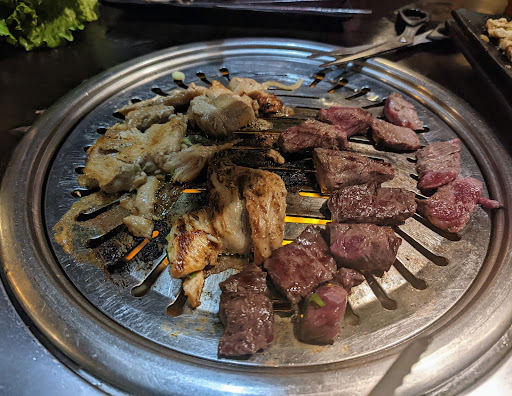 The meat here was top notch and delicious. The bulgogi and galbi was amazing and the sides were delicious as well. The jap chae was slightly disappointing, it wasnt bad but it didnt measure up to the rest of the food I tried. The pricing was a bit on the high side but not outrageous. However, the torture device masquerading as chairs here are supremely uncomfortable. It would be nice to be able to lean back and relax but that was not possible as the chairs have zero back support outside of a small amount in your lower back, which does nothing but enhance the torture experience if you try to lean back.