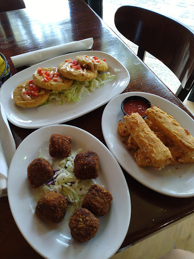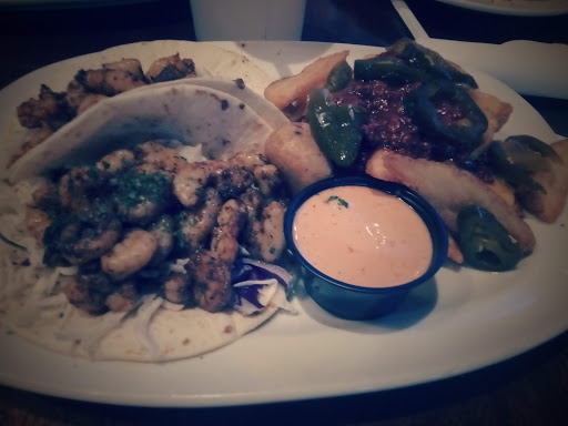 Spacious, clean and inviting. The wait staff was wonderful. The food was just OK. Typical bar food thats overpriced for the portion size. Very disappointed to see that they use boxed, frozen hamburgers; they were very bland. The toppings, however, were fresh and flavorful. Side note: the hush puppies were disgusting. We got 2 orders, both were way over cooked on the outside, raw in the middle and greasy. We sent them back only to have them be replaced by new ones in the same condition.