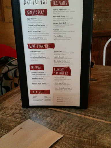 I do like this restaurant, but its better for lunch or dinner than breakfast. I just had the Tasso Shrimp & Grits. Tasty, but nothing to write home about. Main complaints? First off, the coffee is weak and watery, bad start for breakfast. Next, my $14 entree had exactly 4 small (30-32s, approximately) shrimp. Add in 2 (nicely) poached eggs, a half cup of grits, bread, and hollandaise, and you have a small breakfast that should be priced around $8 or $9. Still hungry, and bill + tip is $23 (for breakfast? Really?). Service was perfunctory, and no coffee refill has yet been offered, but its so weak I really dont want anymore. Myself and one deuce are the only customers. Hope this helps those reading decide. I have been here for both lunch and dinner, and was happy with both of those meals.