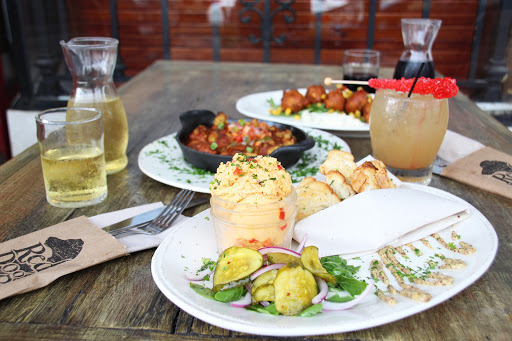 Hidden Jem of uptown restaurants, large seating area and bar in back, almost never a wait for lunch and dinner. Great happy hour and not to miss duck waffles!! croque monsieur sandwich also fantastic. Weve had about half of their menu and everything so far has been amazing. Little red dogs dont hurt either.