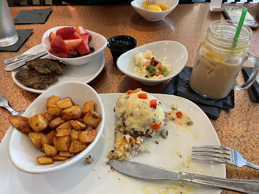 They have a nice selection with a southern flair - bananas fosters sauce, shrimp. You wont go hungry with all they give you. The pancakes have a nice consistency. I like that they offer turkey sausage in addition to the pork products. They also have a gluten free pancakes and lower calorie options. There are burgers and salads for those who want lunch instead of bunch. Its pricier than diner breakfast, but the environment is pleasant and the wait staff is nice and attentive. Good for a date or nice dress-up family brunch.