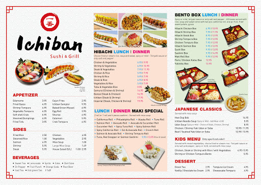 Good food Japanese fair at its inexpensive best at LUNCH. the chicken tempura shrimp tempura chicken teriyaki the bento box all good choices 4 lunch very affordable worth it and delicious you can certainly find healthy meal an affordable price. Do not go 2 China dragon across the way stay here at Ichiban.
