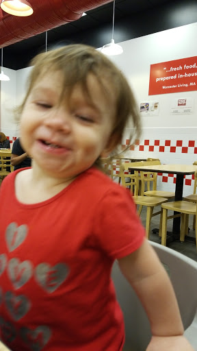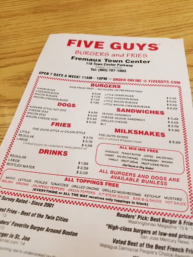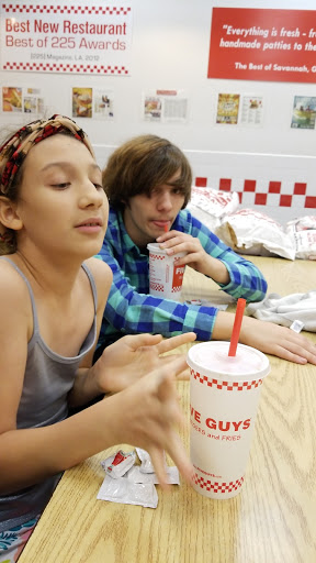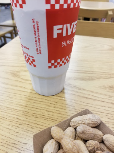 I love Five Guys and I now especially love this location! It was my sisters birthday and the staff agreed to cheer for her when she came in the restaurant. The food is great and has options to eat gluten/dairy free, they give a great heaping of fries, and its really clean. Great place to eat for a small or large group!